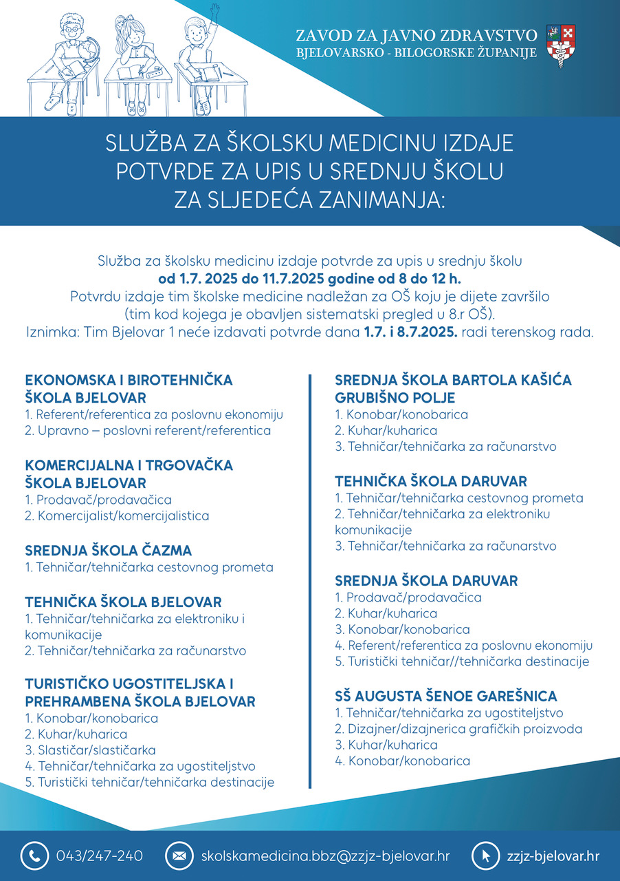 POTVRDE LIJEČNIKA ŠKOLSKE MEDICINE ZA UPIS NA FAKULTETE – O ISPUNJAVANJU ZDRAVSTVENIH ZAHTJEVA